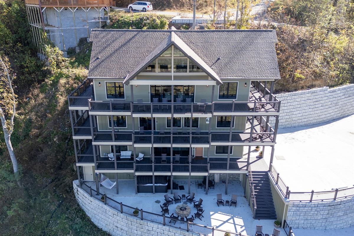 Soaring Eagle Lodge is a beautiful, luxury, custom 7 bedroom lodge situated high on the Forest Springs Mountain in the middle of Gatlinburg. The Lodge has spectacular views of the mountains from its 3 decks and outdoor area. Enjoy the 12-person hot tub with SmartTV, another hot tub on the top deck, theater room, game room including pool table, shuffleboard, and XBOX, as well as plenty of seating to relax or entertain on any of the 3 decks. Come visit and make unforgettable memories!