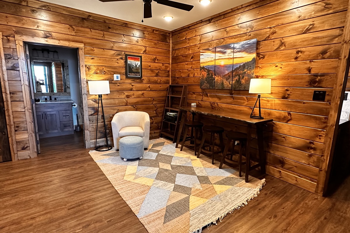 The decks feature lots of rocking chairs and one deck has a fabulous fireplace with furniture for lounging and visiting with family and friends. Soaring Eagle Lodge is conveniently located 1.5 miles east of downtown Gatlinburg and a short 2.5 miles from the entrance to the GSMNP. Rocky Top Sports World, Dollywood and The Island are just a few miles away. So, grab the family and escape to the serenity of Soaring Eagle Lodge!